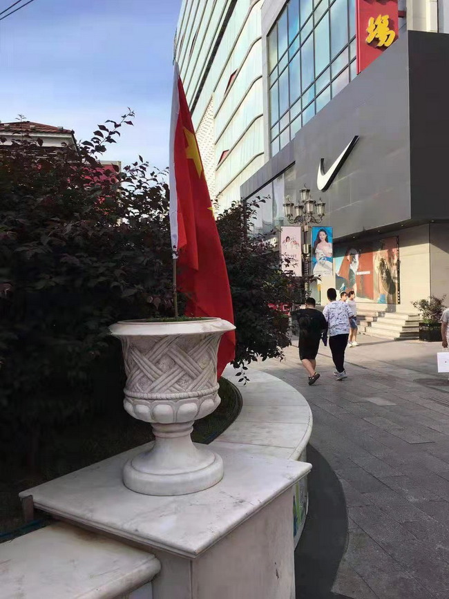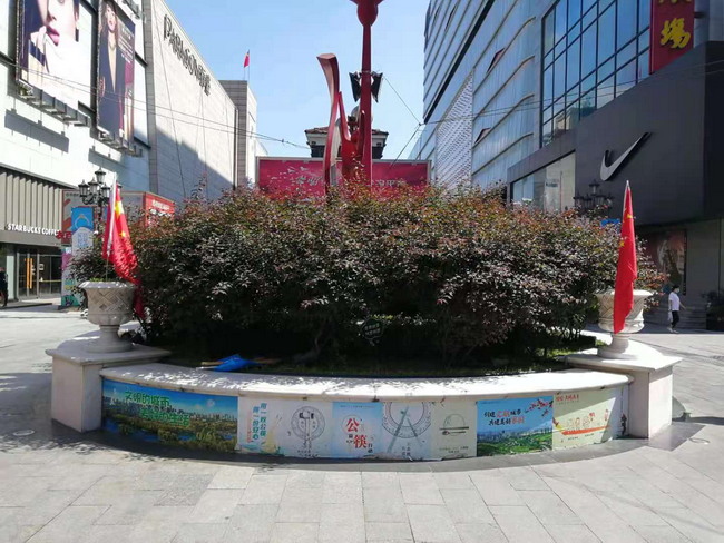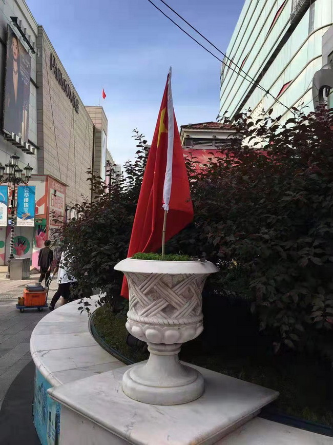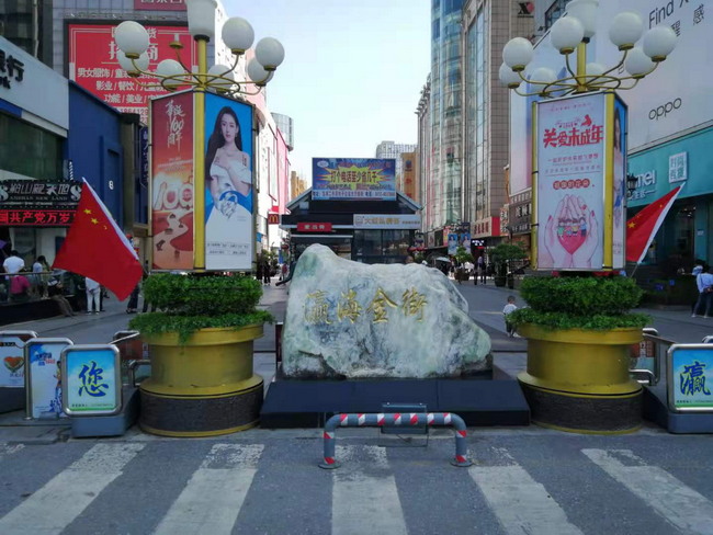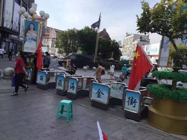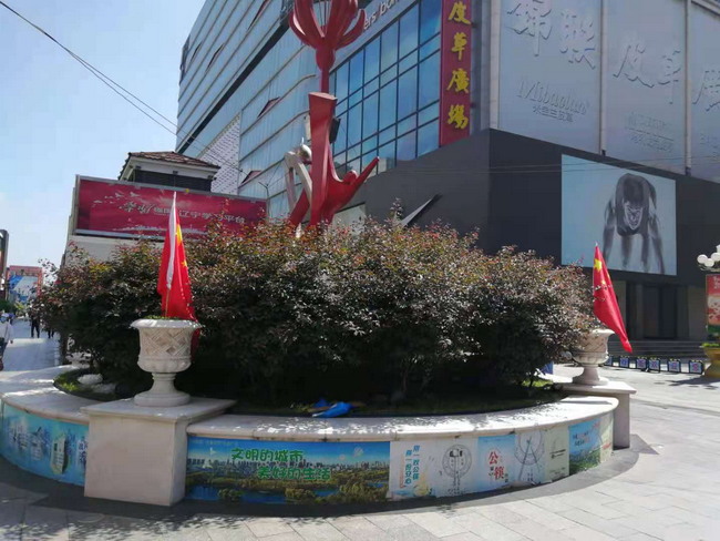 灜海金街迎接建党百年华诞精心装点步行街